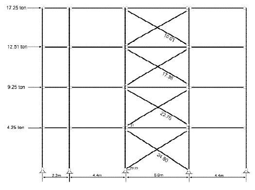سیستم سازه ای جهت X = قاب خمشی + بادبند واگرا + اتصال پیچی